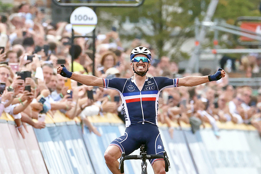 Vainqueur en solitaire après avoir porté une attaque décisive à 17 kilomètres de l'arrivée, Julian Alaphilippe est le premier Français à conquérir deux titres depuis le premier championnat du monde en 1927.
