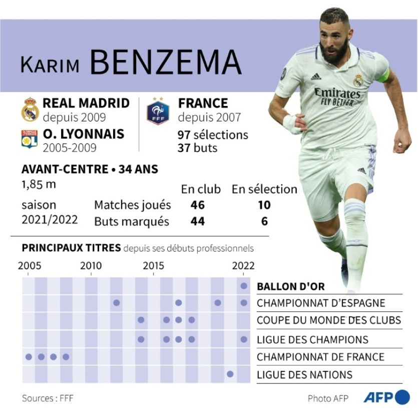 Karim Benzema, vainqueur du Ballon d'Or 2022 [AFP]
