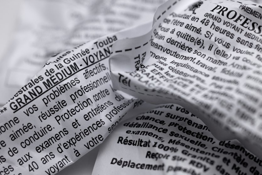 - Lucie PEYTERMANN / AFP | Crée le 15.11.2023 à 14h26 | Mis à jour le 15.11.2023 à 14h26ImprimerUne photographie prise le 28 juillet 2023 à Paris montre des dépliants publicitaires d'un guérisseur africain distribués dans les boîtes aux lettres ou aux sorties de métro. Photo JOEL SAGET / AFPSoigneurs de l'âme ou escrocs ? Qui sont ces marabouts "mi-méprisés, mi-redoutés" ? L'AFP a enquêté sur ce monde très fermé en France, où la croyance dans les envoûtements et la sorcellerie séduit près de trois personnes sur dix, selon l'Ifop.