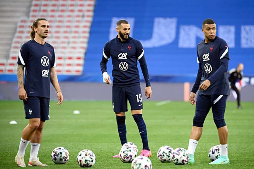 - | Crée le 03.06.2021 à 19h12 | Mis à jour le 04.06.2021 à 15h48ImprimerAntoine Griezmann, Karim Benzema et Kylian Mbappé s'échauffent avant le match contre Galles en préparation à l'Euro le 2 juin 2021 à Nice FRANCK FIFE [AFP]Les Bleus d'attaque pour l'Euro ! L'alléchant triangle offensif autour de Karim Benzema a été à la hauteur des attentes mercredi en match amical contre les Gallois (3-0), l'avant-centre offrant une variété bienvenue pour Didier Deschamps, sélectionneur pragmatique qui offre une "totale liberté" à ses stars.