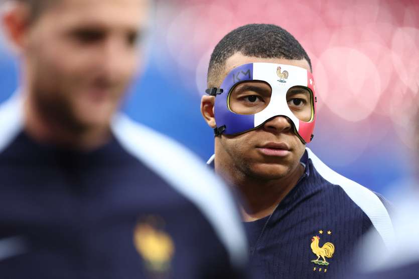 - AFP | Crée le 21.06.2024 à 17h02 | Mis à jour le 21.06.2024 à 17h05ImprimerLa participation de Kylian Mbappé à la rencontre contre les Pays-Bas est dans toutes les discussions. Pour l’instant, une seule certitude existe, s’il doit jouer ce ne sera pas avec ce masque, puisque l’UEFA impose qu’il soit unicolore. Photo Franck FIFE / AFPLa grande question de ce vendredi est de savoir si Kylian Mbappé jouera pour la France avec un masque pour protéger son nez cassé contre les Pays-Bas (samedi matin à 6 heures), pour l’une des grandes affiches de l’Euro-2024, à Leipzig.