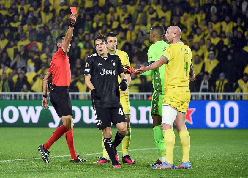 Nantes, qui ne jouera donc pas les 8es de finale de la Ligue Europa (le 2e échelon continental), est, à 14 journées de la fin, 13e en championnat de France (la Juventus Turin est 7e en Italie) et encore en course en Coupe de France (quart de finale contre Lens jeudi prochain).