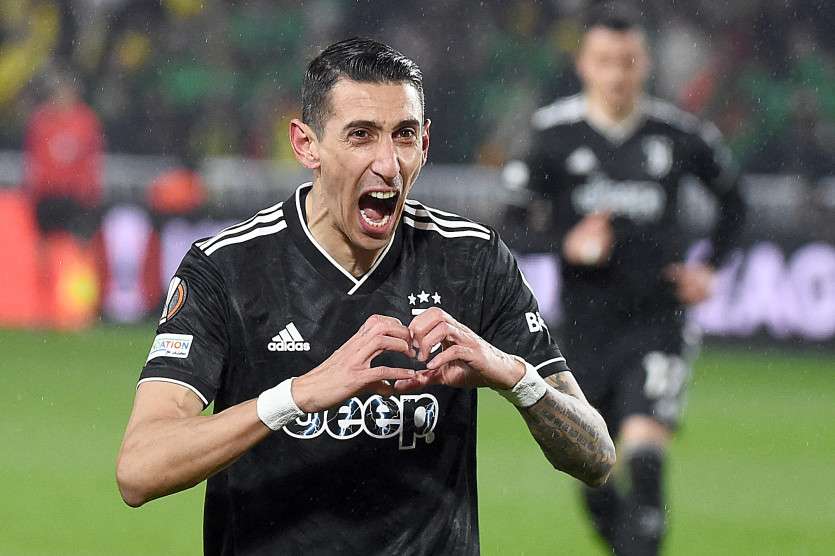 - AFP (avec A.F.) | Crée le 24.02.2023 à 06h40 | Mis à jour le 24.02.2023 à 07h07ImprimerAngel Di Maria a, comme d’habitude lorsqu’il marque un but, fait un cœur avec ses doigts. Photo AFPRéduits à dix pendant plus d’une heure, les Nantais se sont inclinés 3-0 vendredi matin face à la Juventus Turin sur un triplé d’Angel Di Maria, en 16e de finale de Ligue Europa.