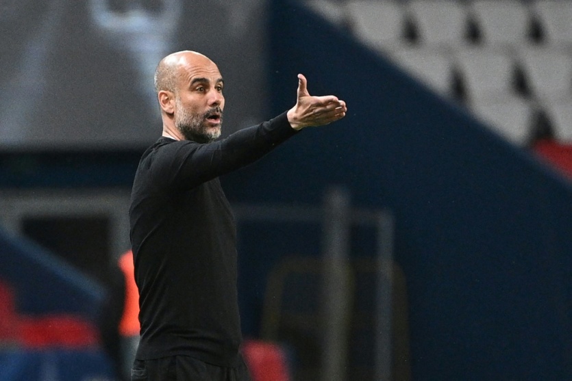 L’entraîneur espagnol de Manchester City, Pep Guardiola, lors de la demi-finale aller de la Ligue des champions contre le Paris-SG, au Parc des Princes, le 28 avril 2021