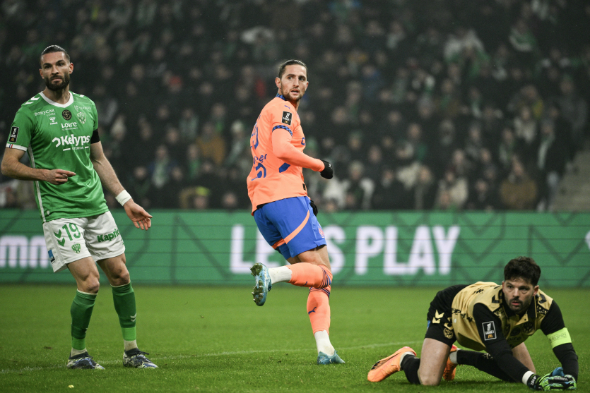 - AFP | Crée le 09.12.2024 à 09h28 | Mis à jour le 09.12.2024 à 09h34ImprimerAdrien Rabiot a marqué, ce dimanche contre Saint-Etienne, son tout premier but sous les couleurs de l’OM. Photo Arnaud FINISTRE / AFPL’Olympique de Marseille (2e) est revenu à cinq longueurs du Paris Saint-Germain (1er) en confirmant à Saint-Étienne (2-0) ses qualités de grand voyageur, et Lens a enchaîné contre Montpellier (2-0) un deuxième succès de rang, dimanche (lundi) lors de la 14e journée de Ligue 1. De leur côté, les Canaris d'Antoine Kombouaré ont décroché une importante victoire contre le voisin rennais.