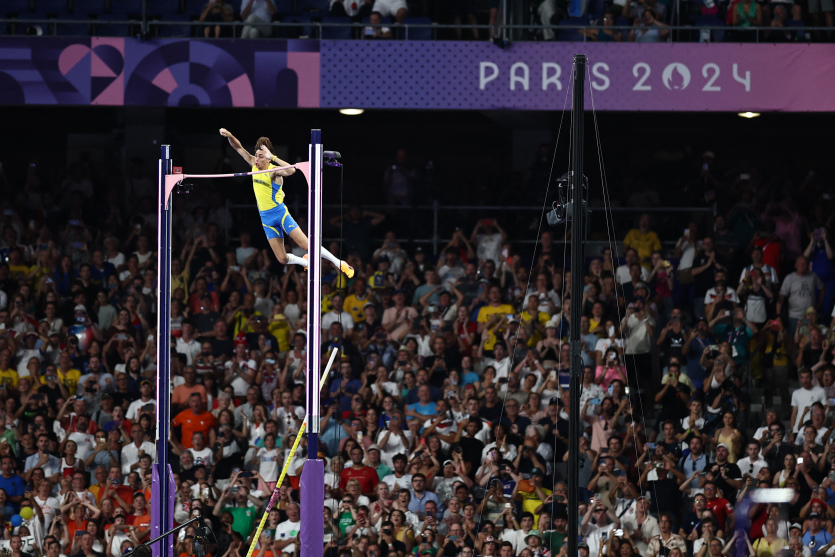 Assuré d’un deuxième sacre olympique depuis qu’il était le seul des finalistes à avoir franchi 6 m, Duplantis s’est ensuite envolé au-dessus de 6,10 m au premier essai – nouveau record olympique -, puis de 6,25 m à son troisième et dernier, porté par les "Mondo", "Mondo", "Mondo" du public du Stade de France.