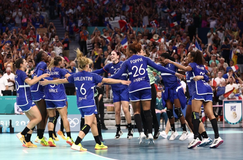 - AFP | Crée le 07.08.2024 à 10h40 | Mis à jour le 07.08.2024 à 10h40ImprimerL'équipe de France féminine de handball s'est qualifiée sans trembler pour les demi-finales des Jeux olympiques en battant l'Allemagne (26-23) la nuit dernière au Stade Pierre-Mauroy de Villeneuve-d'Ascq. Photo DRAprès la médaille d'or du surfeur Kauli Vaast qui a donné leur 13e titre aux Bleus, la France est restée sur le sommet de la vague grâce aux basketteurs, enfin retrouvés face au Canada, et aux handballeuses qualifiées comme eux pour le dernier carré. Le lutteur cubain Mijain Lopez est devenu le premier athlète cinq fois en or en autant d'éditions des JO d'été. L'Américaine Gabby Thomas a privé la sprinteuse de Sainte-Lucie Julien Alfred du doublé en remportant l'or sur le 200 m.