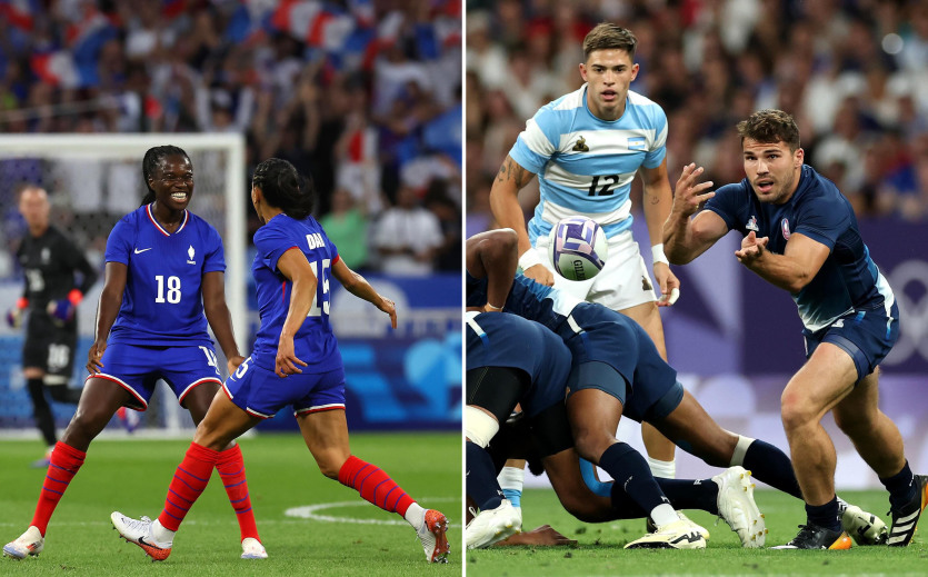 - AFP | Crée le 26.07.2024 à 09h55 | Mis à jour le 26.07.2024 à 09h55ImprimerLes Bleues de Marie-Antoinette Katoto ont parfaitement démarré leur compétition face aux Colombiennes (3-2), malgré quelques sueurs froides en seconde période. De son côté, le rugby à VII d'Antoine Dupont, vainqueur de l'Argentine et qualifié pour les dem Photomontage DRLes Bleues des sports collectifs ont assuré l'essentiel: les handballeuses et les footballeuses ont entamé leur parcours olympique par une victoire, respectivement face à la Hongrie (31-28) et à la Colombie (3-2), jeudi (la nuit dernière) à la veille de la très attendue cérémonie d'ouverture. Une cérémonie qu'Antoine Dupont suivra avec en poche un billet pour les demi-finales du tournoi de rugby à 7.