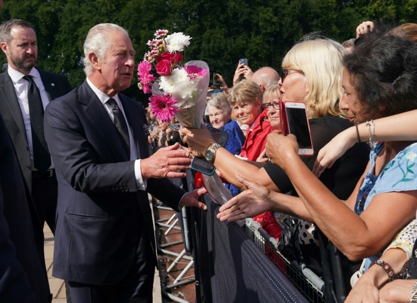 - | Crée le 10.09.2022 à 17h21 | Mis à jour le 11.09.2022 à 02h21ImprimerLe roi Charles III salue la foule à son arrivée au palais de Buckhingham, au lendemain du décès de la reine Elizabeth II, le 9 septembre 2022 à Londres Yui Mok [POOL/AFP]D'une seule et même voix, parfois les larmes aux yeux et une gerbe de fleurs serrée contre la poitrine, la foule était venue en nombre samedi devant le palais Saint-James à Londres, espérant apercevoir Charles III lors de la cérémonie de proclamation du nouveau roi.