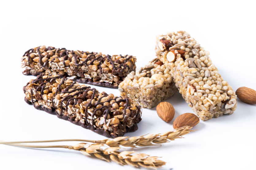Barres de céréales maison : faites avec des flocons d'avoine, du miel, des fruits secs, des noix etc.