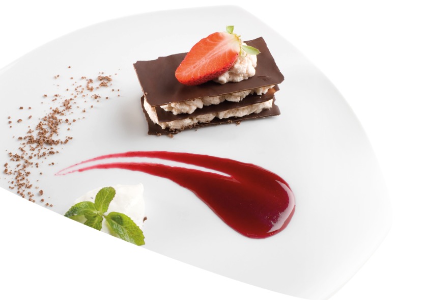 Mille-feuilles de tuiles au chocolat en dessert