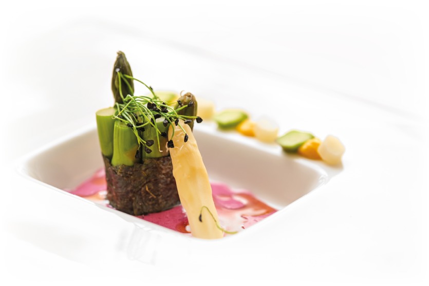 Asperges vertes et blanches au tartare d’algues nori en entrée
