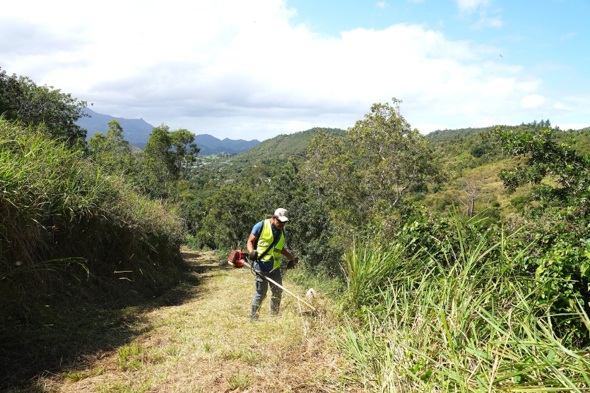 Depuis plus de dix ans, à l’approche de la saison sèche, ces agents travaillent main dans la main pour créer et entretenir des pistes dites "coupe-feu" qui permettront aux véhicules et aux pompiers d’accéder au plus près des flammes, en adoptant différentes stratégies, pour tenter de maîtriser le plus rapidement possible le sinistre. Koghis, Plaine Adam, Pic aux morts, Katiramona… Au total, ces équipes ont pour mission d’ouvrir et de défricher une quinzaine de kilomètres de pistes à travers la commune d’ici mi-septembre, le plus souvent sur de vastes propriétés privées.