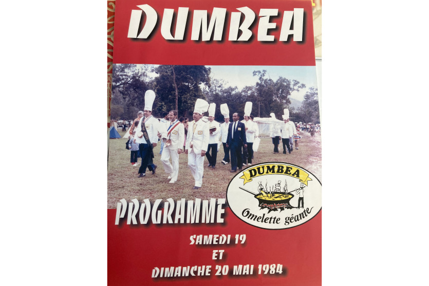 Josiane Radotin-Moreau, une Dumbéenne, avait lu dans Le Pèlerin qu’une confrérie avait été fondée en 1973 et célébrait les fêtes de Pâques autour d’une omelette géante. Elle a trouvé l’idée originale. En Nouvelle-Calédonie, nous étions en plein marasme politique, en 1984, au début des Évènements. Elle a présenté ce projet à plusieurs maires alentour et c’est Bernard Marant, alors premier édile de Dumbéa, qui a saisi la balle au bond et fait toutes les démarches pour importer l’omelette géante ici. Il est allé à Bessières pendant les fêtes de Pâques. Quand il est revenu, il a fait faire une poêle par les Forges d’Océanie, qui n’existent plus et se trouvaient sur l’actuel parking en face du service des impôts, à Nouméa. Quand tout était prêt, des membres de la confrérie de Bessières sont venus pour préparer la première omelette et nous indiquer le processus pour la réaliser.