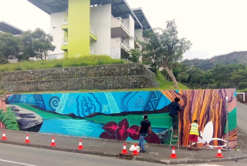 La ville de Dumbéa propose un parcours artistique au travers de ses rues et sur ses murs, le Dumbé’Art. D’ores et déjà riche de 32 fresques, et une sculpture, elle s’est enrichie aujourd’hui d’une 34e œuvre d’art. "À l’initiative du Fonds social de l’habitat, les artistes du collectif Couleurs du Pays ont mené un projet artistique collaboratif avec les jeunes habitants de la résidence Île Dié, située à l’angle de l’avenue Becquerel et de la rue du Bataillon du Pacifique, détaille la mairie de Dumbéa. Au travers d’ateliers créatifs organisés les mercredis et pendant les vacances scolaires, les enfants et les artistes ont créé une œuvre collective qui reflète l’imaginaire des jeunes et renforce le lien entre art, nature et communauté." Le dessin, illustrant la biodiversité calédonienne, s’inspire de l’environnement de la commune : la rivière et les montagnes. Mais surtout il est "inspiré des idées et souhaits exprimés par les enfants et les locataires."