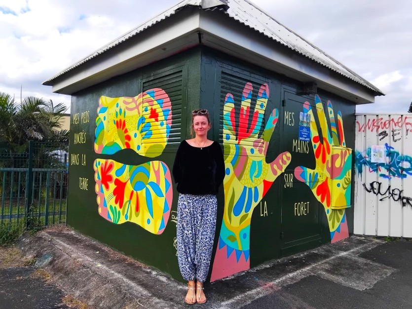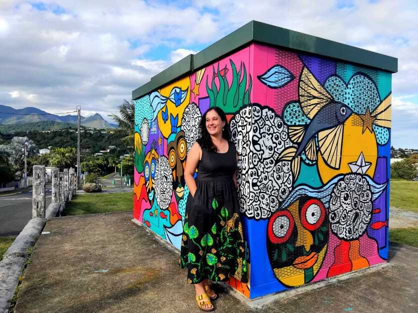 À travers son œuvre L’eau et l’huile, Marion Dionnet a voulu démontrer que ces deux liquides peuvent se mélanger, contrairement à certains propos politiques survenus lors des émeutes. Photo Anthony TejeroAvec le soutien du collectif Couleurs du pays, ces citoyens ont donné vie à Racines et avenir, la trente-troisième et toute dernière œuvre de Dumbé’Art. Ce parcours inédit sur le Caillou permet de cheminer, de l’avenue Antoine-Becquerel jusqu’à la médiathèque, le long de fresques hautes en couleur qui fleurissent un peu partout sur les murs et "transfo" du quartier donnant à la commune des allures de véritable musée à ciel ouvert.