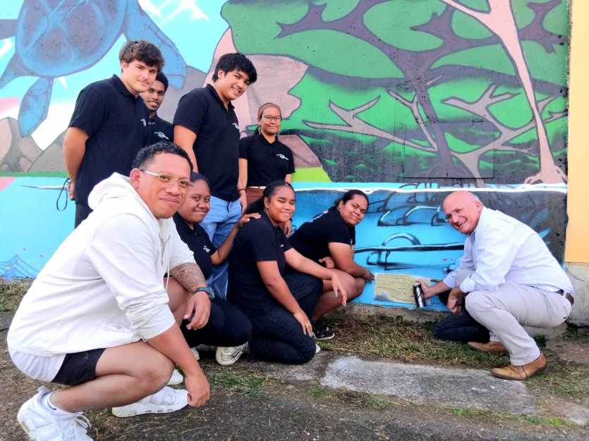 "Face aux dégradations et aux tags dans les quartiers, nous avons choisi de répondre par l’art. Cette fresque n’est pas qu’un mur décoré, elle est le reflet de notre volonté d’agir concrètement pour notre commune." Du haut de leurs 18 et 23 ans, Dylan Leconte et Irina Wejieme le martèlent : "la jeunesse n’est pas un simple maillon de la société, elle en est le cœur battant". Fièrement dressés devant leur œuvre monumentale, ces porte-parole du conseil des jeunes de Dumbéa ont dévoilé à la mairie, ce mercredi 16 juillet, le résultat d’un long travail.