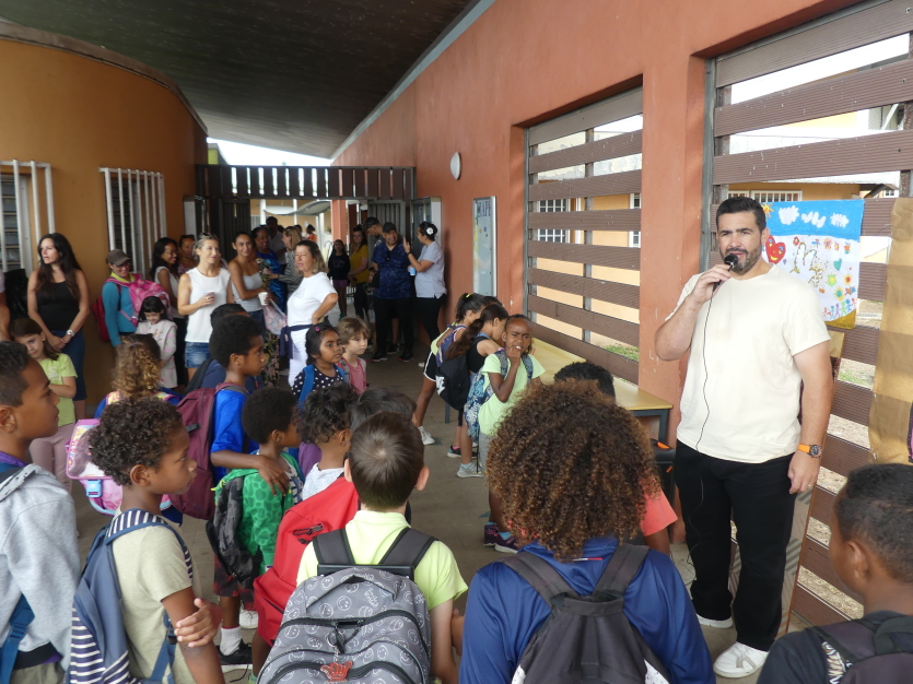 - Baptiste Gouret | Crée le 25.11.2024 à 11h02 | Mis à jour le 25.11.2024 à 11h02ImprimerDevant l’école Renée-Fong, le directeur Stéphane Courtine (au micro) et l’ensemble du personnel ont organisé un débrayage à la suite d’une nouvelle dégradation de l’établissement. Photo Baptiste GouretL’établissement de Dumbéa-sur-Mer est la cible d’intrusions et de détériorations régulières ces dernières semaines. Le personnel a débrayé pendant une heure, ce lundi matin, pour dénoncer ces actes et appeler à une réaction des habitants du quartier. Une cinquantaine de parents et des élus y ont pris part.