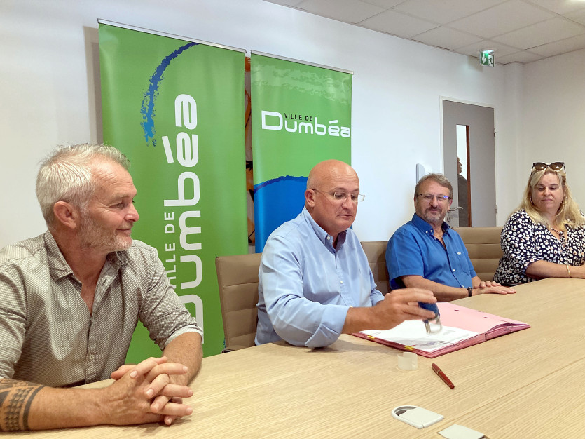 - Baptiste Gouret | Crée le 03.11.2023 à 16h15 | Mis à jour le 03.11.2023 à 17h15ImprimerEntouré de Laurent Calleja, Gérard Piolet et Muriel Malfar, le maire de Dumbéa Yoann Lecourieux a signé le permis de construire de la future salle multisports de Dumbéa-sur-Mer. Photo Baptiste GouretLe maire de Dumbéa a signé, ce vendredi 3 novembre, le permis de construire du projet d’Apolima sport solidaire, porté par Laurent Calleja, ouvrant la voie au réaménagement d’un parking de Dumbéa-sur-Mer en une salle de boxe, de judo et de crossfit dédiée aux jeunes du quartier.