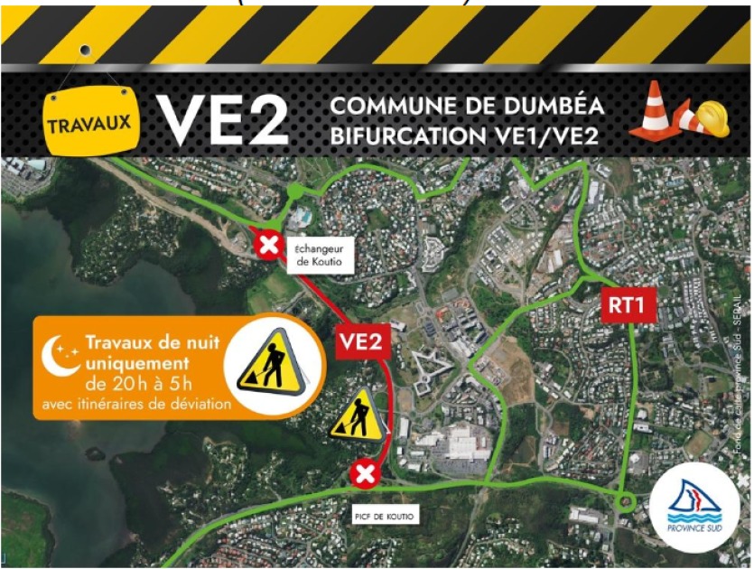 La province a entamé des travaux de renforcement de chaussée sur la VE2. Ilustration Province SudCes travaux auront lieu uniquement de nuit, entre 20 heures et 5 heures, du lundi soir au vendredi matin, afin de limiter les perturbations en journée.
