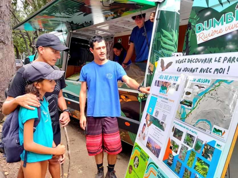 Jeux, livrets, maquettes et panneaux interactifs autour des différentes espèces qui peuplent les lieux… Ce bus environnemental se veut avant tout ludique. Une formule qui semble séduire les visiteurs. Du moins à en croire Julien Payet, de retour de randonnée avec sa fille Souad : "C’est génial de voir et de discuter avec des jeunes engagés dans l’environnement. La préservation de la nature passe par cette proximité avec les gens, glisse ce père de famille. C’est top, ils ont tout compris ! Ce genre d’initiatives est indispensable. Plus on sensibilisera les gens, plus on pourra encore profiter de ces endroits paradisiaques."
