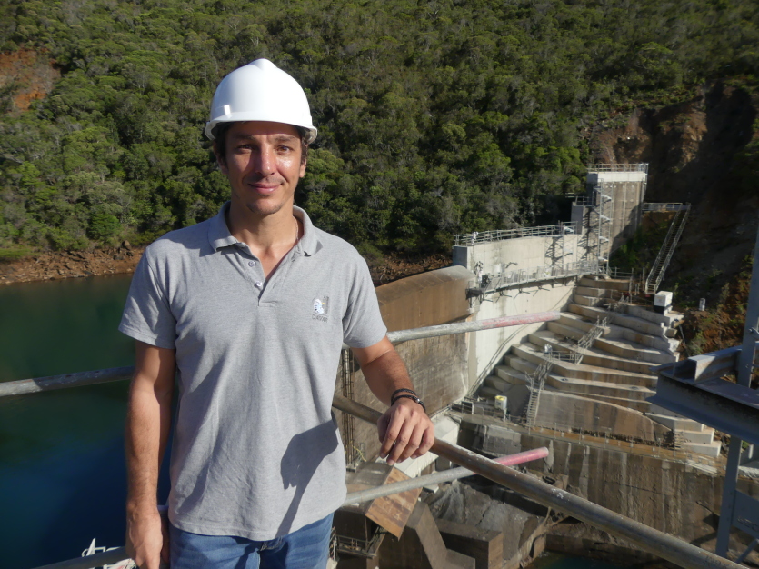 Jean-Philippe Stouff est contrôleur du domaine public fluvial à la Davar et suit l’avancée du chantier du barrage de Dumbéa. Photo Baptiste GouretIl s’agira également, dans les prochains mois, de mettre en place les 9 derniers "tirants d’ancrages", qui permettent d’éviter au barrage de se soulever sous la pression de l’eau malgré le retrait d’une partie de sa structure. Vingt-et-un dispositifs similaires ont déjà été installés. Enfin, le profil déversant du barrage sera reconstruit afin de l’uniformiser. L’achèvement des travaux de confortement est programmé à la fin de l’année.
