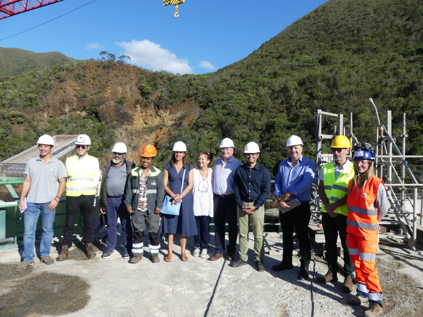 Des représentants du haut-commissariat, du gouvernement, de la ville de Dumbéa ainsi que de la SLN étaient présents lors de la visite de chantier du barrage de Dumbéa, ce jeudi 31 juillet. Photo Baptiste GouretLe chantier du barrage en chiffres