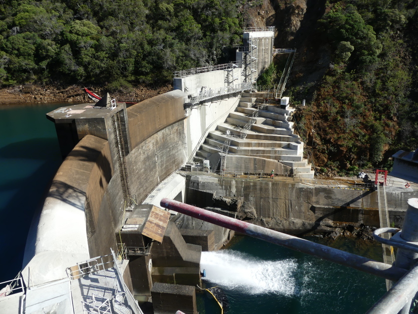 Ainsi, après quasiment un an de réfection de la piste pour permettre un accès aux engins de chantier, les ouvriers ont procédé à la découpe de la partie haute du barrage afin d’élargir les seuils de déversement, c’est-à-dire l’endroit d’où s’écoule l’eau en cas de fortes crues. L’élargissement de 32 m, soit environ 1 500 tonnes de béton retirées, devrait augmenter de quasiment 1 000 m3/s la capacité de déversement du barrage de Dumbéa, et réduire ainsi la pression de l’eau exercée sur sa structure, le rendant davantage résistant. Avant ça, des dalles de réception avaient été construites sur les deux rives pour éviter un écoulement de l’eau sur le talus, ce qui aurait pu dégrader les fondations du barrage. Un chantier exceptionnel qui vise avant tout à sécuriser cette ressource en eau essentielle, mais aussi à s’adapter au changement climatique, dont un des effets attendus est la multiplication des fortes crues.