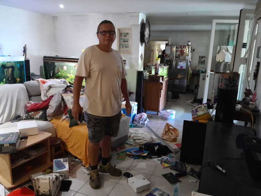 Face aux menaces grandissantes des émeutiers, Frédéric a décidé de fuir, le week-end dernier, pour mettre sa famille à l’abri. Photo Anthony Tejero"Ce n’est plus une vie de rester ici avec nos enfants. Aujourd’hui, nous sommes en danger." Frédéric observe, hagard, ce qui était il y a encore quelques semaines son havre de paix. Dans la nuit de lundi à mardi, cette habitation de l’avenue d’Auteuil a été pillée et saccagée. Multimédia, outillage, couteaux, fusil de chasse… "Tout ce qui a de la valeur" a été dérobé et la maison saccagée. Sans parler de nombreux poissons "massacrés" dans les bassins de cet aquariophile et des chats introuvables.