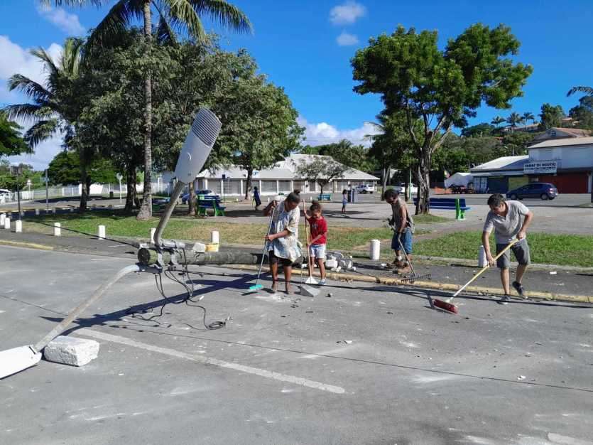 "On n’a plus besoin de télévision. Tous les soirs, on a droit à un film de guerre en direct." Balais en main, Séverine met un point d’honneur à ne pas perdre sa bonne humeur. Chaque matin, avec une poignée de voisins, cette Dumbéenne se retrousse les manches et nettoie inlassablement les innombrables débris qui jonchent la chaussée en face de chez elle pour "aider quand les forces de l’ordre sont fatiguées".