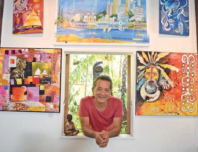 - L'artiste Aimé Nangard vient d'ouvrir la galerie Nakanrakari, nichée sur les flancs du Mont-Koghi. Il y expose ses tableaux qui mêlent influences mélanésiennes et contemporaines.Ses œuvres sont à l’image de ses origines : étonnantes et détonantes. Né à Port-Vila, en 1954, Aimé Nangard est métissé japonais, javanais, réunionnais, kanak et allemand. Autant de cultures qui influencent par petites touches les tableaux de ce Dumbéen, devenu artiste peintre surIl vous reste 91% de l'article à découvrir.Cet article est réservé aux abonnés.