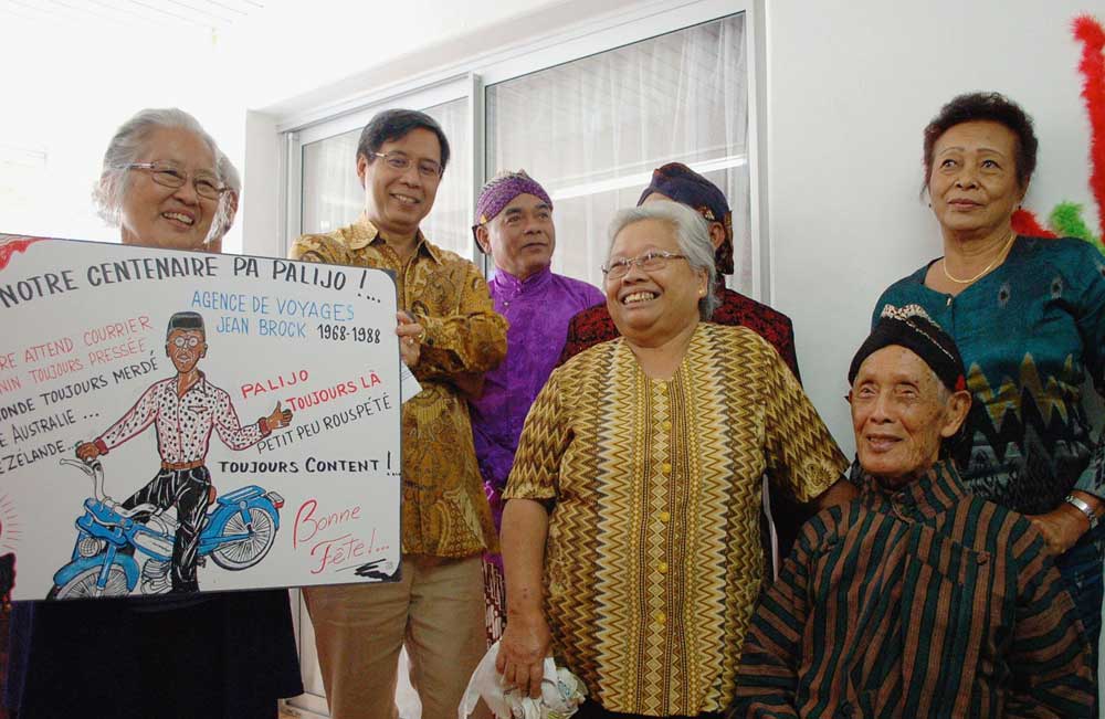 - Dumbéa. Entouré de ses familles de cœurUn mois après Fernande Dubaton, un autre habitant du Mont-Dore a célébré son centenaire, hier, à Katiramona. Palijo, venu en Calédonie comme travailleur sous contrat, s'est vu offrir une fête surprise par ses proches de la communauté javanaise.Parvenu à sa centième année, Palijo - Palioh pour les Indonésiens - vit toujours chez lui dans le quartier mondorien de Saint-Michel. Mais c’est à Katiramona que ce vieux monsieur aux yeux rieurs a fêté hier midi son siècle de vie. Même si la date de sa naissance reste un mystère. &Il vous reste 90% de l'article à découvrir.Cet article est réservé aux abonnés.