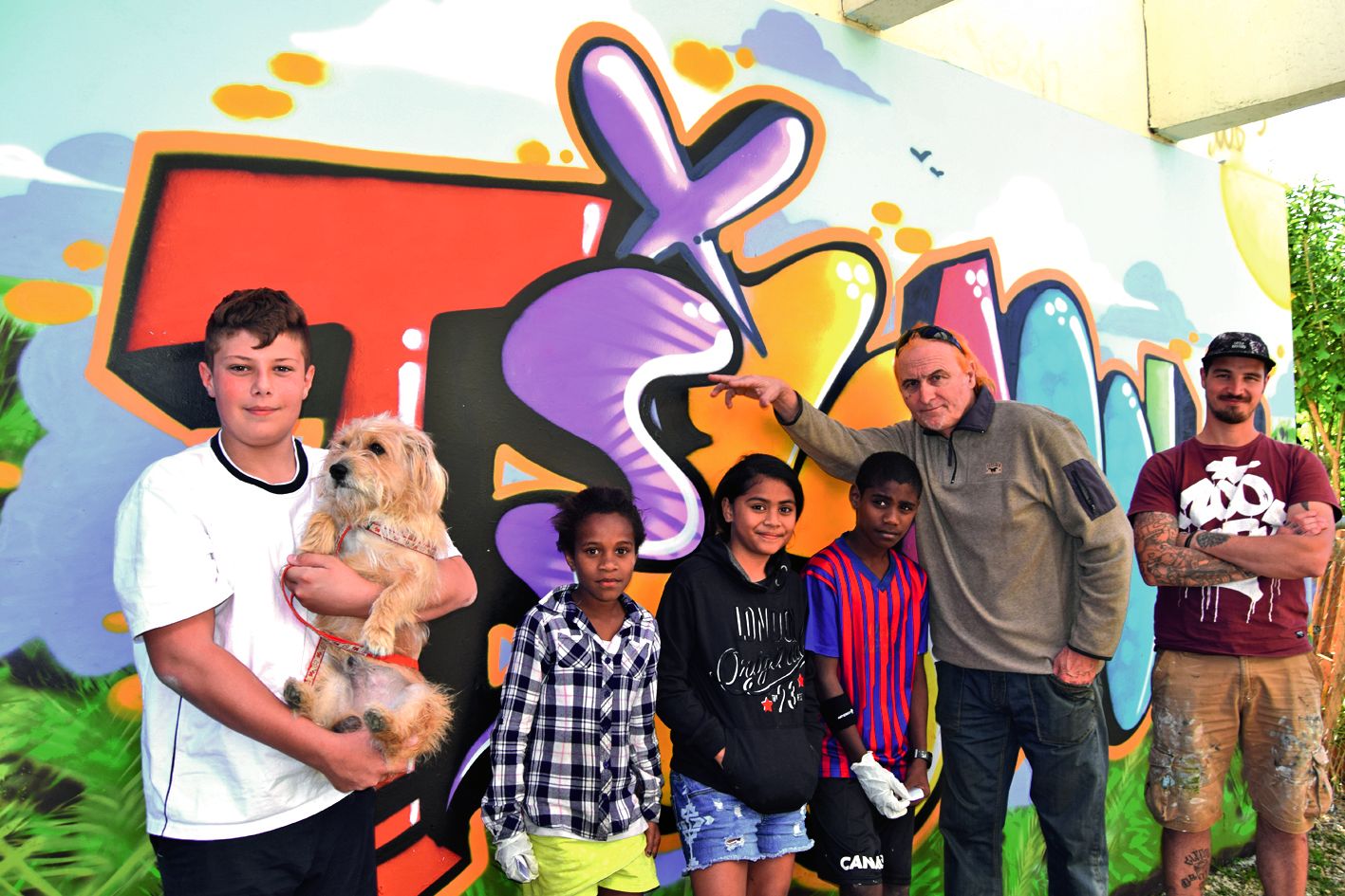- DUMBÉA. Pendant les vacances, une dizaine de jeunes, âgés de 9 à 17 ans, de la résidence FSH Timanu, au centre urbain de Koutio, « redécorent » deux pignons de murs à proximité des bâtiments H et I, sous la direction du graffeur Mahou (à droite). « Je suis allé voir l’associationIl vous reste 56% de l'article à découvrir.Cet article est réservé aux abonnés.