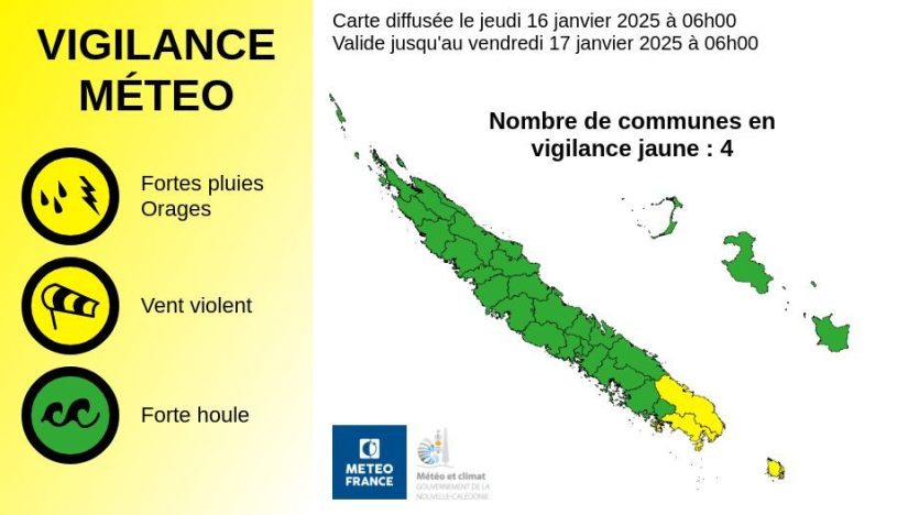 A noter que la commune de Dumbéa, elle, n'est concernée par aucune de ces deux vigilances.