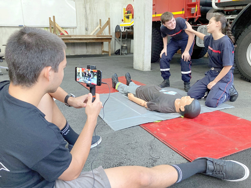 Accueil > Grand Nouméa > Dumbéa > Société > Association > Face caméra, les jeunes pompiers jouent les acteurs de la prévention