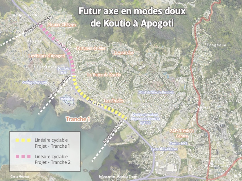 - La ville va créer de nouveaux axes en modes doux entre Koutio et Dumbéa-sur-Mer grâce à une subvention du « Fonds mobilités actives - aménagements cyclables » du ministère de la Transition écologique.Les modes doux continuent de tracer leurs voies à Dumbéa. Adoptée par les élus, l'idée d'un nouvel axe de 3,5 km entre Apogoti et Koutio, destiné à relier les pistes cyclables de Dumbéa centre à Dumbéa-sur-Mer va faire l'objet d'une convention de financement avec l'État. D'une longueur dIl vous reste 88% de l'article à découvrir.Cet article est réservé aux abonnés.