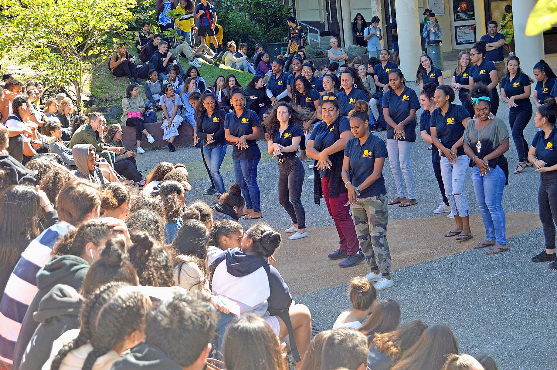 - DUMBÉA. Hier, au lycée du Grand Nouméa, les élèves se sont installés sur les marches des gradins pour assister à un show offert par des lycéens de BTS Services et prestations des secteurs sanitaire et social. Un flash mob, spectacle de danse qu’ils ont travaillé pendant la semaine de laIl vous reste 69% de l'article à découvrir.Cet article est réservé aux abonnés.