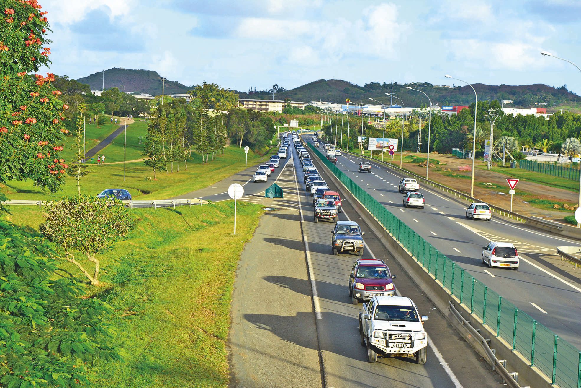 - Dumbéa. Les bouchons sur la voie express pourraient bientôt devenir un mauvais souvenir. Hier, le chantier de création d’une seconde voie à l’échangeur de Koutio a démarré. La circulation devrait s’améliorer dès Noël.C’est sans doute l’un des chantiers les plus attendus par les habitants qui vivent dans le nord de l’agglomération et travaillent à Nouméa. Tous les soirs, le même scénario se produit : à partir de 16 heures, les véhicules font patiemment la file indienne entre la zone commerciale deIl vous reste 91% de l'article à découvrir.Cet article est réservé aux abonnés.
