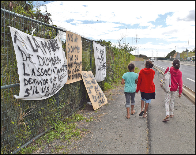 - Dumbéa. La question de la sécurité aux abords de la Savexpress ravivéeLe long de la Savexpress, vers l'ancien péage, plusieurs banderoles viennent d'être déployées. Pour l'automobiliste qui passerait trop vite pour les lire, les messages sont clairs. Les habitants du squat voisin demandent une passerelle piétonne.« On veut à tout prix une passerelle. Merci. » « Nous ne voulons pas de deuxième ou troisième victime de la route. Merci. » « A la mairie de Dumbéa, l’association Kitjobee demande une passerelle s’il vous plaît. Merci »... Depuis quelques jours,Il vous reste 94% de l'article à découvrir.Cet article est réservé aux abonnés.