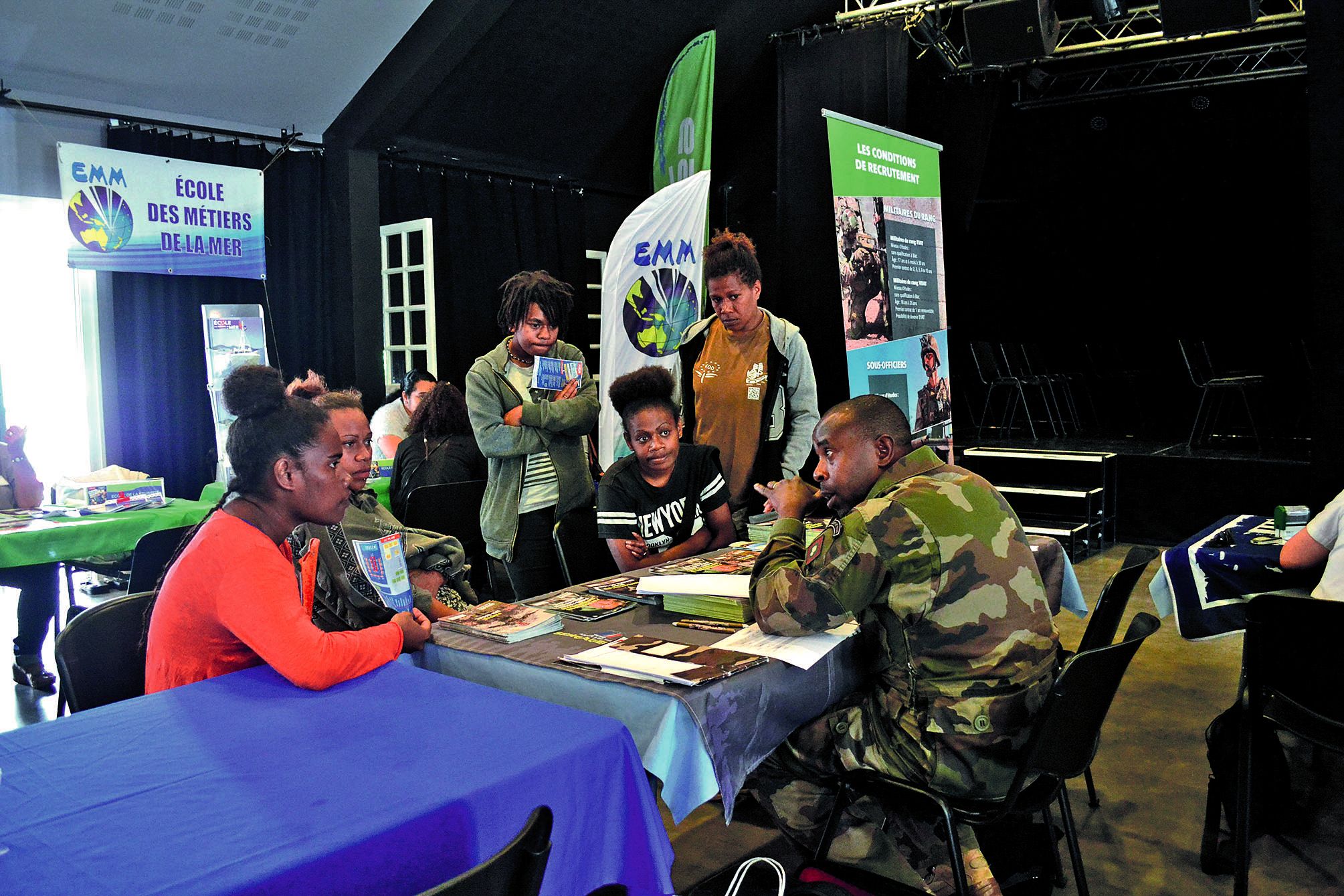 - DUMBÉA. Le 10e Forum des métiers, de la formation et de l’emploi a attiré les visiteurs, hier, comme ce groupe de jeunes venus se renseigner sur les carrières au sein de l’armée de terre. Organisé au centre culturel, le forum réunissait trente-six exposants parmi lesquels des institutionsIl vous reste 54% de l'article à découvrir.Cet article est réservé aux abonnés.