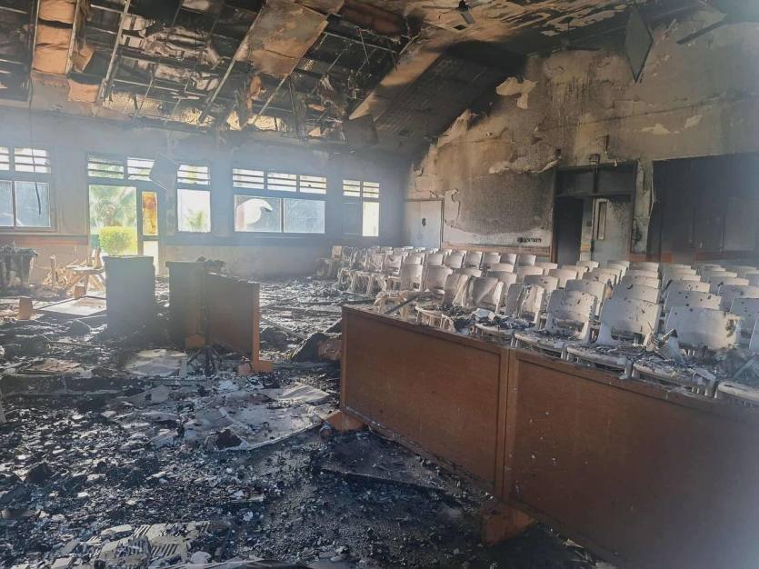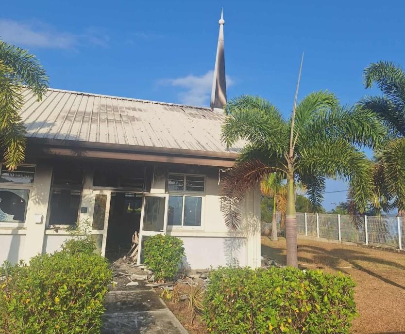 - A.-C.P. | Crée le 13.10.2025 à 18h28 | Mis à jour le 14.10.2025 à 10h34ImprimerLes dégâts matériels sont conséquents, l’intérieur de l’église a notamment été détruit. Photo page Facebook Nina JuliéUne enquête est en cours après l’incendie qui a détruit l’église mormone située dans le secteur du Col-Barrau, au Mont-Dore. Elle porte également sur des faits de violences aggravées commis sur les gendarmes mobiles qui intervenaient sur le site, victimes de jets de pierres, indique le parquet dans un communiqué. Deux personnes ont été interpellées. Trois autres sont toujours recherchées.