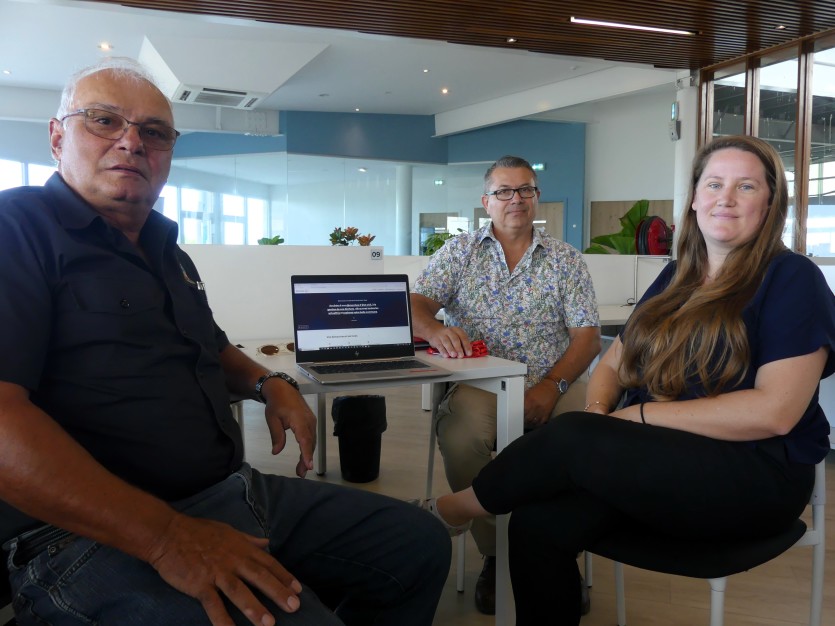 Jean-Jacques Afchain, premier adjoint au maire du Mont-Dore, Laurent Niquet, technicien au service informatique, et Gaëlle Grès, chargée de communication, lors de la présentation du nouveau site internet de la ville. Photo Baptiste GouretMERCI DE VOUS IDENTIFIER