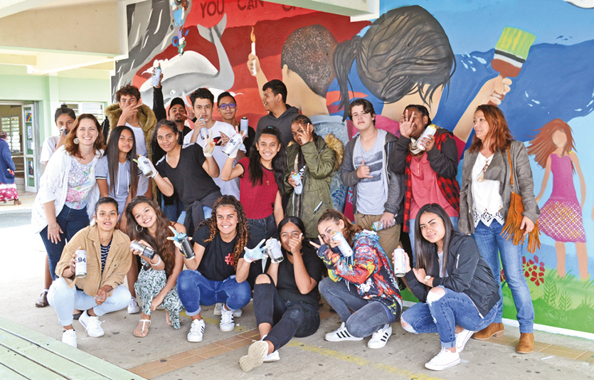 Accueil > Grand Nouméa > Mont-Dore > Les collégiens réalisent une fresque collective avec le graffeur Sham