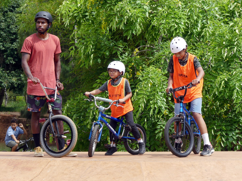 Accueil > Grand Nouméa > Mont-Dore > Loisirs > Mont-Dore : ils s'essaient au BMX au skatepark de La Coulée