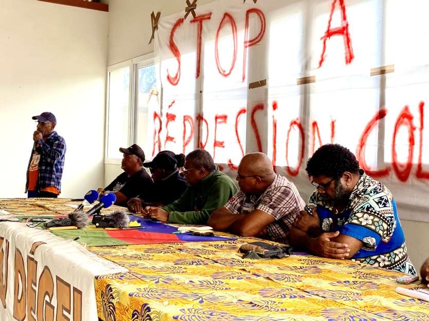 La conférence de presse prévue par la Cellule de coordination des actions de terrain mercredi 19 juin n’a pas eu lieu. À la place, les leaders de la CCAT ont été arrêtés, mis en garde à vue et certains, dont Christian Téin, extradés en France. La Cellule, soutenue par de nombreux organismes, a organisé une nouvelle conférence de presse ce mardi après-midi, à la tribu de la Conception. À la table, des membres de l’Union calédonienne, des syndicalistes, des représentants coutumiers. Même si les discours n’étaient pas toujours les mêmes, tous se sont accordés sur le message principal : le retour de Christian Téin et des autres membres de la CCAT envoyés en France. "La condition sine qua non pour se mettre en berne est le retour de Christian Téin" a affirmé Jhon-Rock Tindao, président du conseil coutumier de l’aire Drubea-Kapumë.