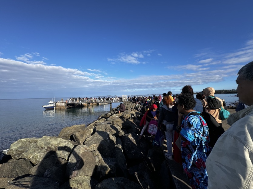 Beaucoup de monde en attente d’une place à bord du Coral Palm. Le Mary D pourrait s’ajouter aux bateaux affrétés dès lundi, ce qui offrirait 132 places supplémentaires. Photo Aurélia DumtéMême si la plupart des riverains du sud du Mont-Dore sont heureux de la réactivité de la province Sud pour mettre en place les navettes maritimes, la lassitude a pris le relais. La liste de doléances est longue. Installer des tivolis, des bancs, des tickets pour la file d’attente, mieux gérer la file d’attente à port Moselle, proposer des navettes terrestres à Nouméa… À chaque interlocuteur, une problématique.