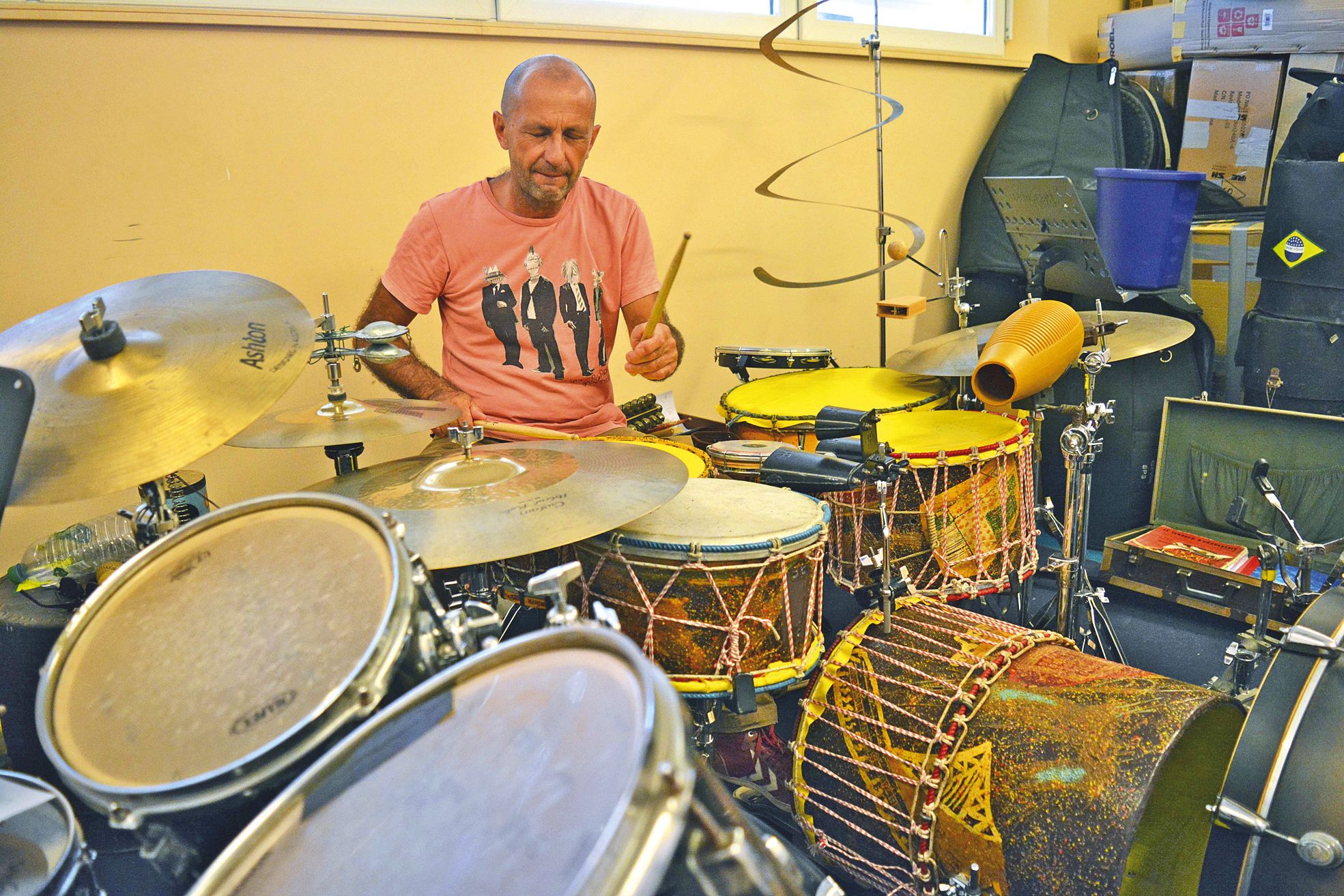 - Mont-Dore. Ce sera une déclaration d’amour à la Calédonie. Demain, le musicien Bruno Josué offrira en performance une heure non-stop de batterie au Petit théâtre de Boulari. Une manière de remercier, avant son départ, ce pays qui lui a tant donné.Dans la petite salle de répétition du pôle artistique de Boulari, les batteries sont tellement serrées qu’elles finissent par se confondre les unes avec les autres. Mais dans ce dédale de cymbales, dans cet attirail de tambours, un instrument sort nettement du lot. Tissus coutumiers, écorcesIl vous reste 93% de l'article à découvrir.Cet article est réservé aux abonnés.