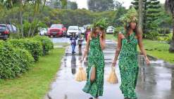 - Tous les ans, la Fête des communautés marque l'anniversaire de la signature des Accords de Matignon. Concerts, danses traditionnelles, concours de ukulélé, artisanat et gastronomie, le programme a attiré unpublic nombreux tout le week-end. Hier, les activités prévues dans les jardins ont finalement eu lieu en salle à cause de la pluie.1 > La pluie s’est abattue, vers 11 heures hier, sur les jardins du centre culturel où les animations étaient prévues. Qu’à cela ne tienne, artistes et public se sont réfugiés dans la grande salle. Ici, des danseuses en tenue de spectacle se dirigent vers l’intéIl vous reste 75% de l'article à découvrir.Cet article est réservé aux abonnés.
