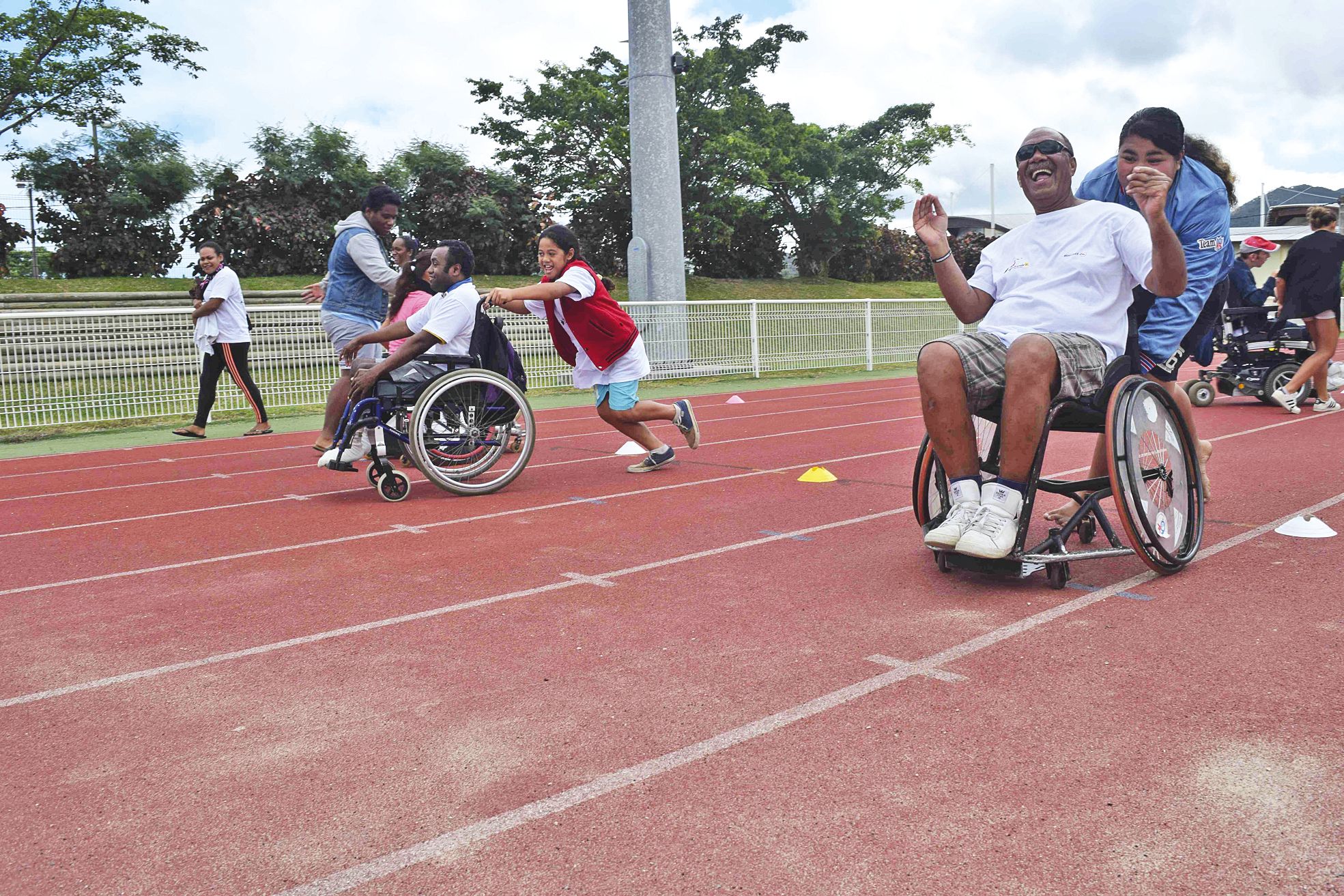 - La huitième édition d' Handicapable s'est terminée par le désormais traditionnel rallye sportif, hier au complexe Boewa de Boulari. Pendant deux heures, plus de trois cents personnes se sont retrouvées autour de différentes activités ludiques et sportives. Objectif : que personnes handicapées et personnes valides se rencontrent et se découvrent. 1 > Parmi les activités proposées, le tour en fauteuil roulant. L'équipe N (à droite), composée notamment de Margot, guide de Pierre-Gabriel, a fait le show, en dansant et en chantant. 2 > Le jeu du morpion a également passionné les foules. Sous les exclamations des animateurs, lesIl vous reste 76% de l'article à découvrir.Cet article est réservé aux abonnés.