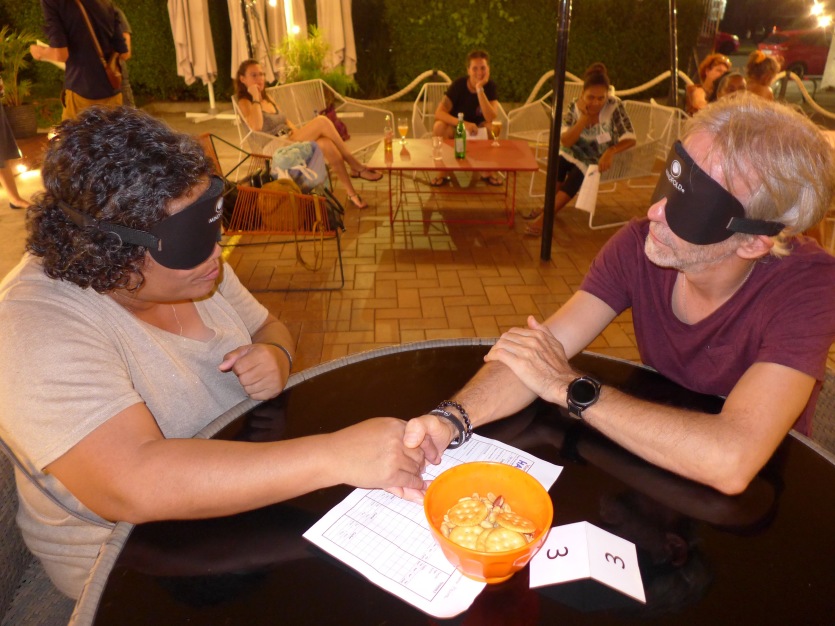 - Organisé lundi soir par l'AVHNC, le premier speed dating les yeux bandés de Nouvelle-Calédonie a attiré au 35 Foch sept femmes et autant d'hommes venus se découvrir autrement.Il est 18h20. Seule assise à sa table, Paprika patiente, un masque occultant sur les yeux, visuellement coupée du monde. "C'est une sensation particulière", nous glisse-t-elle, un peu timide. "Dans ces moments d'attente, j'ai l'habitude de sortir mon téléphone portable, mais aujourd'hui, ce n'Il vous reste 94% de l'article à découvrir.Cet article est réservé aux abonnés.
